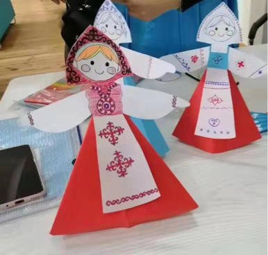 第二个环节是俄罗斯传统工艺体验,同学们亲手制作俄罗斯布娃娃、纸娃娃,体验俄罗斯剪纸、绘画艺术的风采,感受俄罗斯民间艺术的独特魅力。