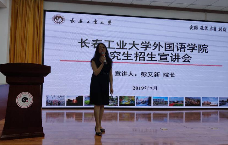 【通讯员张美】7月9日下午,威廉希尔经理彭又新、副经理王轶偕同日语系系主任曾妍、以及俄语系教师张美一起到长春大学旅游学院进行研究生招生宣讲活动。宣讲会得到了长旅领导的高度重视,国际交流学院的黄经理和王副经理早早做好了宣讲前的宣传准备工作,英日俄三个专业的大三员工提前来到阶梯教室静候宣讲开始。