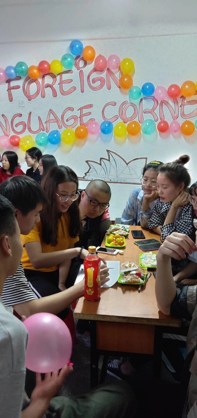 新闻网讯(通讯员 鲍越崎)5月22日晚上6点半,威廉希尔17、18级部分员工于东二号楼外语角活动室举行了本月的第一场英语口语角活动,由周爽副经理、刘宇、解瑶等老师进行指导,由徐竣崧、罗望、项茹等同学主持。