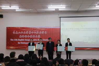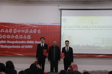 决赛分演讲、影评与问答和疯狂猜词三个环节,比赛中穿插英文歌曲演唱、乐队表演、B-box和舞蹈等节目,将比赛现场气氛推向了高潮。经过激烈角逐,计算机科学与工程学院的杨啸晨和化学工程学院的马宇昂获得个人演讲特等奖;公共管理学院团队荣获集体一等奖。大赛还评出个人演讲一等奖4名,二等奖17名,三等奖18名;集体二等奖2个,三等奖3个。与会领导和老师分别为获奖选手颁奖。