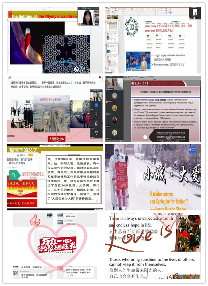 外语教师在讲授知识的同时,精心准备,认真讲好学校的、吉林省的乃至全国的战“疫”故事,将感人肺腑事迹汇合在一起,成为中国抗“疫”叙事话语的一部分。