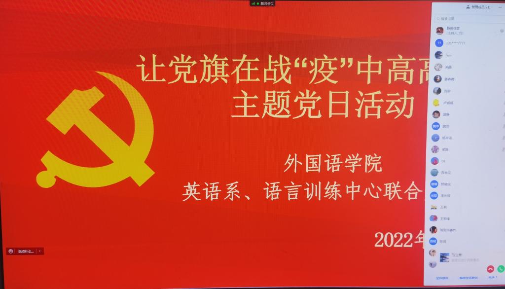 3月17日至18日,各党支部结合当前疫情防控的形势要求和工作实际,组织了“让党旗在战‘疫’中高高飘扬”线上主题党日活动。活动中,各党支部共同学习、研究落实《通知》精神,号召全体党员要充分发挥党员先锋模范作用和党支部战斗堡垒作用,积极做好捐赠助力、志愿服务等工作,克服自身困难,冲锋在前;要严格落实属地管理原则和疫情防控要求,严之又严、细之又细,本着对自身、对全社会高度负责的态度,做到核酸检测应检尽检,不漏一人,全部覆盖。同时,必须做好个人防护,避免交叉感染;员工党员要带头敢于担当、乐观向上、服从指挥和管理,按要求主动参与志愿服务,和学校一道,战胜疫情,拥抱春天。同时,各党支部还利用主题党日契机,深入了解全院教师居家情况、教学情况、存在的困难,并就抓好BTX系统建设等工作进行了布置和要求。