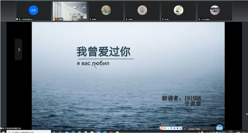 俄语系全体师生相聚云端,热情交流互动,通过朗读俄罗斯文学作品经典选段,共同感受俄语的韵律之美,探索俄罗斯文化的精神内涵。俄语系主任张美在开幕致辞中代表俄语系全体老师向同学们表达问候,对疯狂俄语协会的发展寄予美好祝愿,通过朗读诗歌《Учителя по жизни были строги》(生活老师们很严厉),鼓励同学们勇敢乐观地面对困难,等待春暖花开时。往届工大学子们也一直心系母校,2012级俄语生,目前就读于莫斯科国立大学的刘巧芳博士代表俄语系毕业生们从遥远的异乡为老师和学弟学妹们送来祝福。