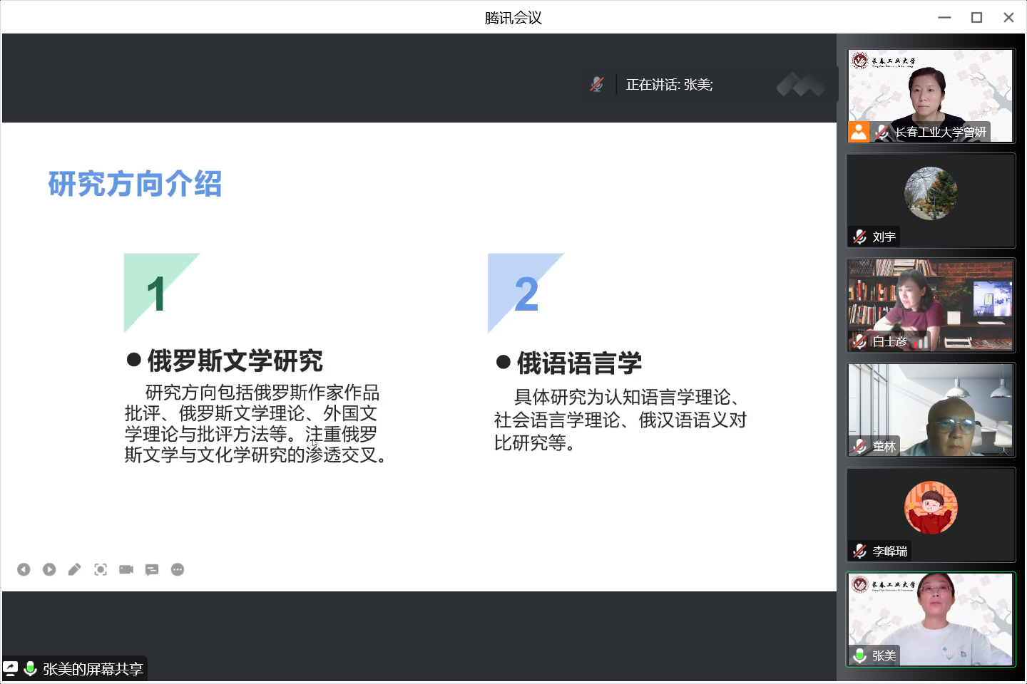 随后,张美进行了俄语语言文学方向的说明。主要从专业介绍、招生指南、题型介绍三个方面对俄语语言文学方向的发展历史、导师团队、课程体系、研究方向、就业前景、赴俄留学项目、招生计划、题型设置等相关问题进行了详细地介绍,在过程中强调了读研对于人生的意义以及报考william威廉亚洲官方研究生的优势。她希望各位考生基于自身情况有针对性地制定复习方案,注重专业基础语言能力和语言素养地提升。