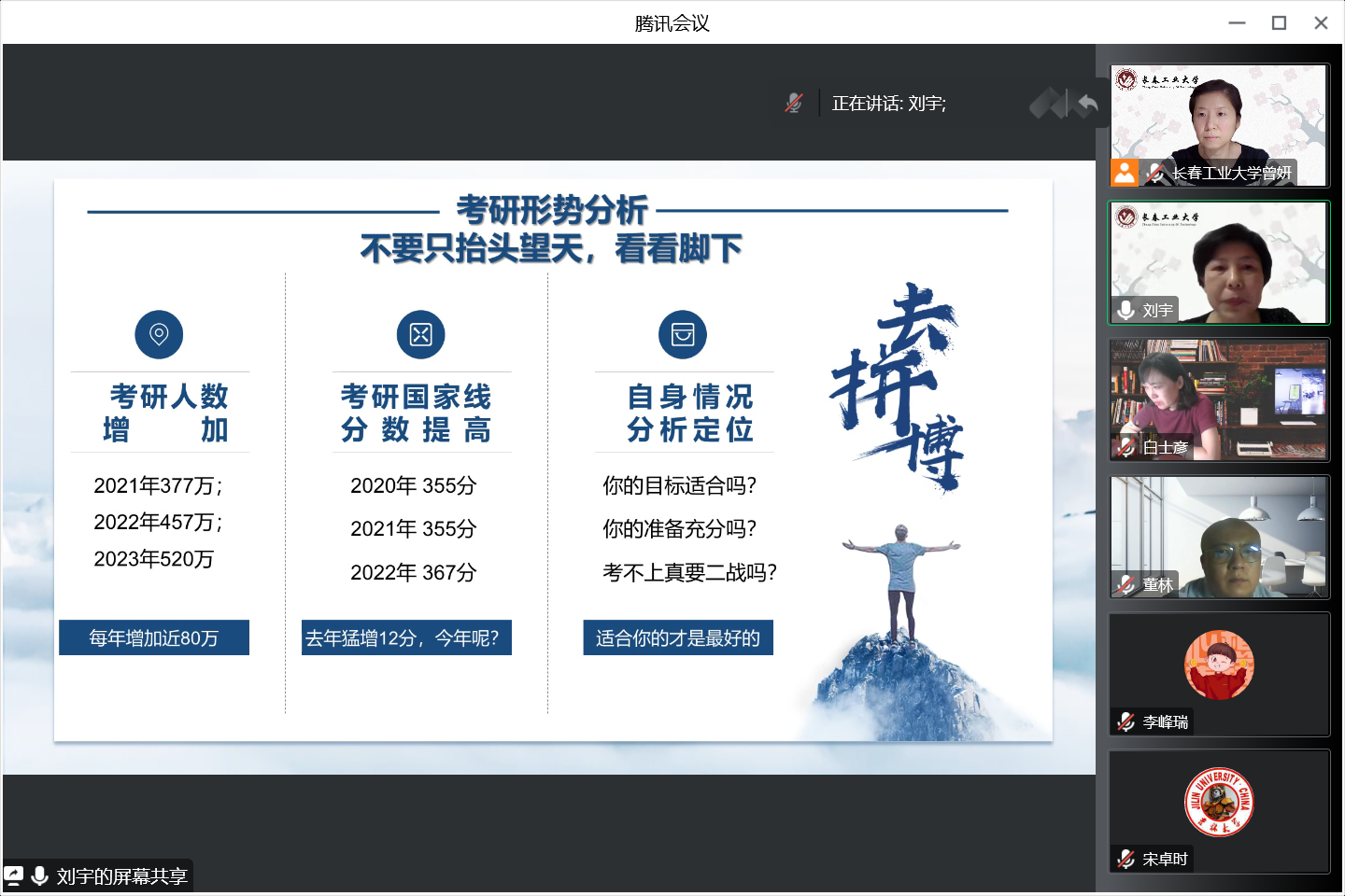 新闻网讯(通讯员 宋卓时) 为提升员工考研热情和积极性,帮助员工了解2023年的考研形势,明确考研目标,9月30日晚7点,威廉希尔副经理曾妍、英语系主任刘宇和俄语系主任张美,在腾讯会议平台,为长春人文学院威廉希尔的员工召开了线上考研宣讲会。该校威廉希尔副经理白士彦主持会议,翻译系主任孙瑜、应用日语系副主任董林、经贸俄语系主任冯柱及19、20级员工参加了本次宣讲会。