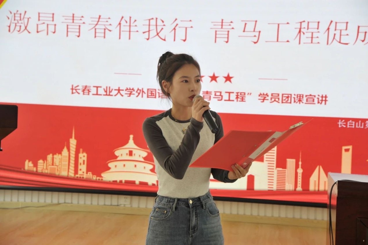 孙琪郡对公司此次活动表示热烈欢迎,并向全体团员宣讲了团中央开展青马工程的意义。本次团课主讲人员为211001班团支书李杭霓、211003班生活班长张馨月、221004班班长王馨仪,三位同学精心选题、认真备课,从理想信念教育、爱国主义教育、道德品行教育以及团员意识教育四个模块进行宣讲。