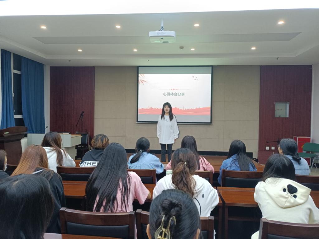 接着,同学们观看了关于习近平给全体东北大学师生的回信的视频,进一步学习贯彻了回信精神。视频结束,同学们积极讨论,纷纷表示会矢志不渝地弘扬爱国主义光荣传统,把学子的钻研刻苦熔铸成为祖国发展的青春力量,不断迎击困难、锻造自我,将自己的所知、所学、所能贡献到在祖国和人民需要的地方,以实际行动践行初心使命,勇担历史重任。