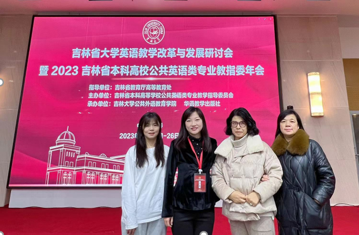 本网讯(通讯员 佐冰冰)2023年11月25日,“吉林省大学英语教学改革与发展研讨会暨2023吉林省本科高等学校公共英语类专业教指委年会”在吉林大学胜利召开。本次研讨会由吉林省教育厅高等教育处指导、吉林省本科高等学校公共英语类专业教学指导委员会主办,吉林大学、华语教学出版社承办。会议邀请了国内知名专家、省内大学英语教学教师负责人和教师代表参加了此次研讨会,公司经理王轶教授和公共外语教学部佐冰冰、姜力、刘欣欣等老师出席会议。