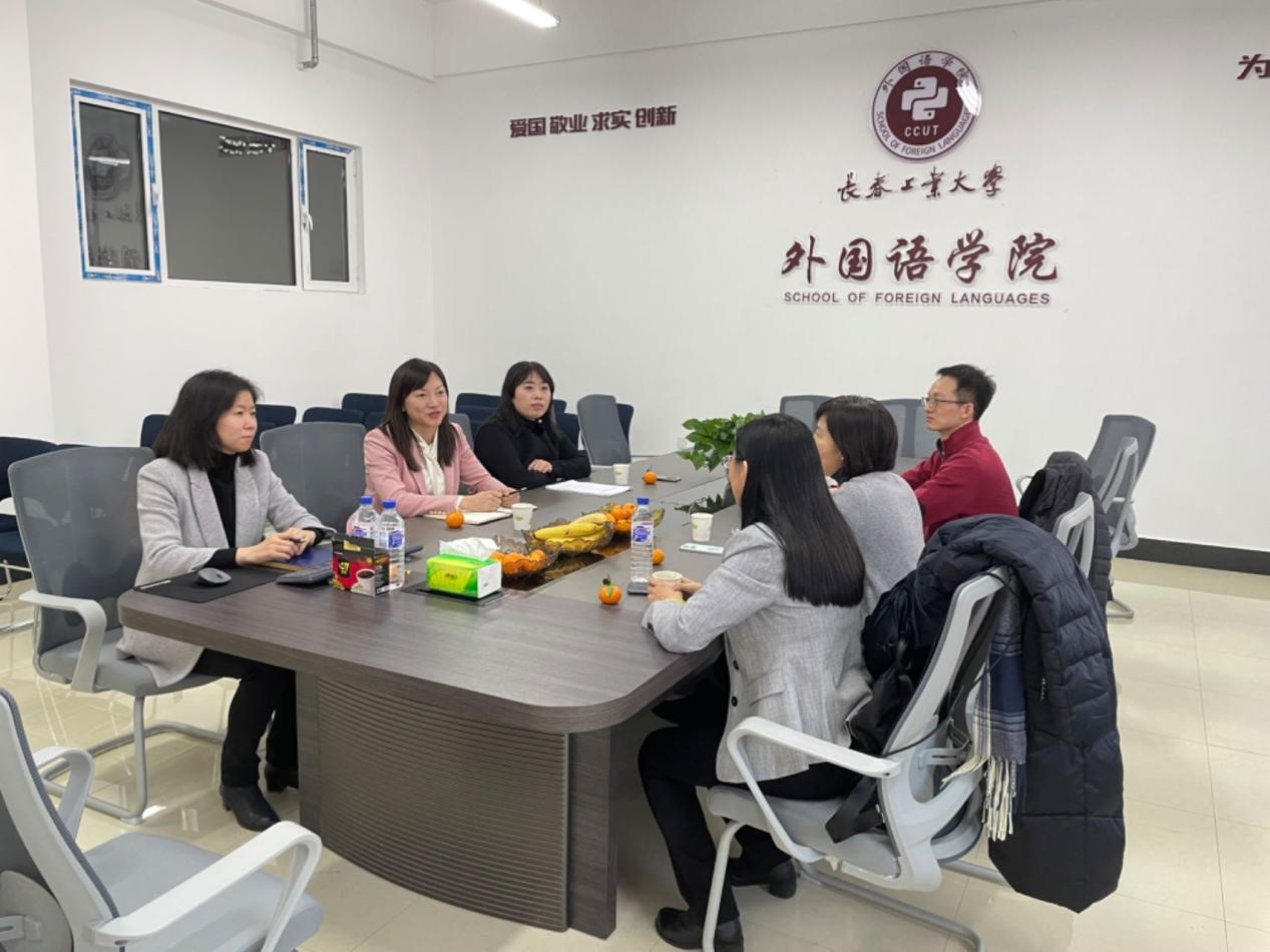 报告会后,威廉希尔经理王轶,副经理李秀文、曾妍,英语系主任刘宇和部分英语系教师与张宏薇教授就翻译硕士专业学位授权点的申报工作进行了深入的交流和讨论。张教授从申报材料的撰写、翻译硕士的团队建设、翻译实践基地的选择以及未来翻译硕士点的评估工作等四个方面给予了宝贵意见。张教授的耐心指导令在场的教师们受益匪浅,并对未来的工作充满了信心与动力。