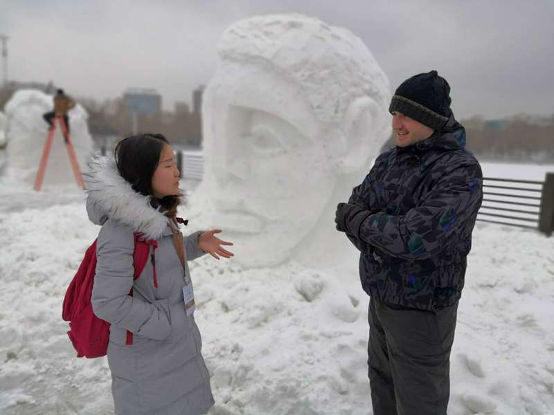 新闻网讯(通讯员高鹤)在全世界辞旧迎新之际,williamhill中文网木兰国际交流志愿者协会志愿者们赴长春国际雕塑公园,为“冰雪缘,雕塑情”第三届中国长春国际冰雪雕塑邀请展担任现场口译。