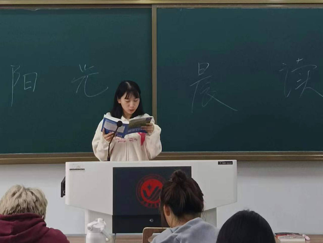 阳光晨读活动有序进行,使同学们热情高涨、身心投入,充分展现了威廉希尔员工的精神面貌。今后各位同学还需要不懈的坚持和努力,希望大家享受清晨阳光的沐浴,逐渐养成自觉晨读的好习惯,充分发挥阳光晨读活动对语言学习的积极作用。