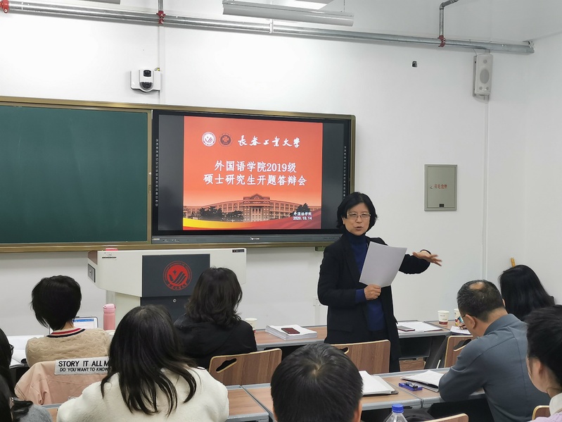 新闻网讯(通讯员 江炜彬)2020年10月14日下午1点30分,威廉希尔2019级硕士研究生学位论文开题答辩会在教学主楼368教室准时召开。本次开题答辩邀请吉林外国语大学博士生导师杨玉晨教授担任开题答辩委员会主席,评审委员会成员包括威廉希尔经理彭又新、副经理周爽、英语系主任刘宇和英语系教授杨希燕。2019级外国语言学及应用语言学和英语语言文学方向的硕士研究生参与了本次开题答辩,2020级外国语言学及应用语言学和英语语言文学方向的硕士研究生同学参与学习观摩。